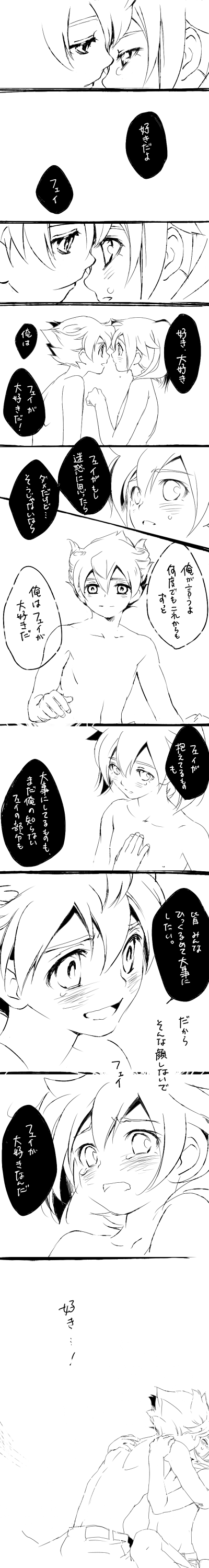 天馬くんの何が難しいって、あのきりっとした眉なのに雰囲気がすっごいソフトな公式設定を真似できないところなんだ!天馬くん難しい。フェイちゃんのつり目も難しい(つり目苦手)。そして天馬くんが苦手なら必然的にSARUも本当はすごく描くの難しい!実は結構最初から詰んでる笑!!